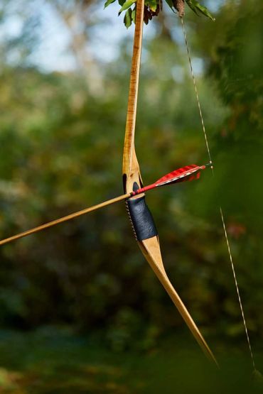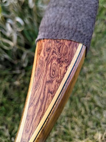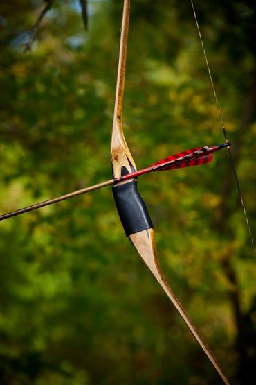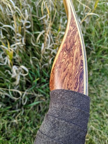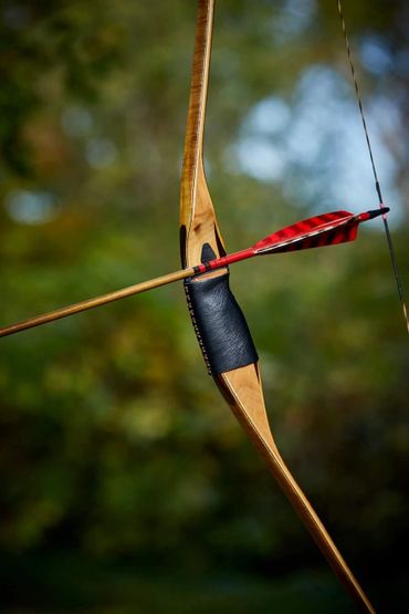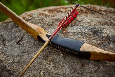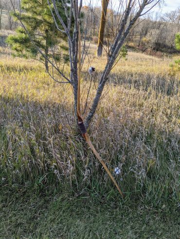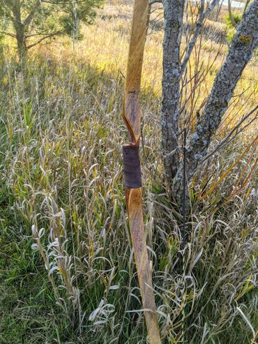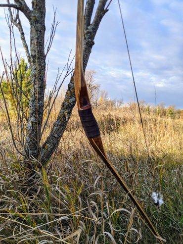 The Adventure Styk is built in a 60" length and in the draw weight of your choosing. Materials used in the base model are colored glass (color of your choosing) over bamboo cores. Osage is the standard riser wood. The shelf is cut with a radius and has a generous sight window. The standard grip is a locator grip to allow you to easily grip the bow the same way each and every time, helping you achieve more consistent shot placement. The Adventure Styk will come standard with reinforced tips, built with tip wedges, to allow for use of modern sting materials. The feel of this bow are second to none with the silky smooth draw and is nearly dead in the hand upon release and it casts the arrow at very quick speeds and great accuracy. Guys who have shot this say it is truly a point and shoot bow, easily hitting right where you look.